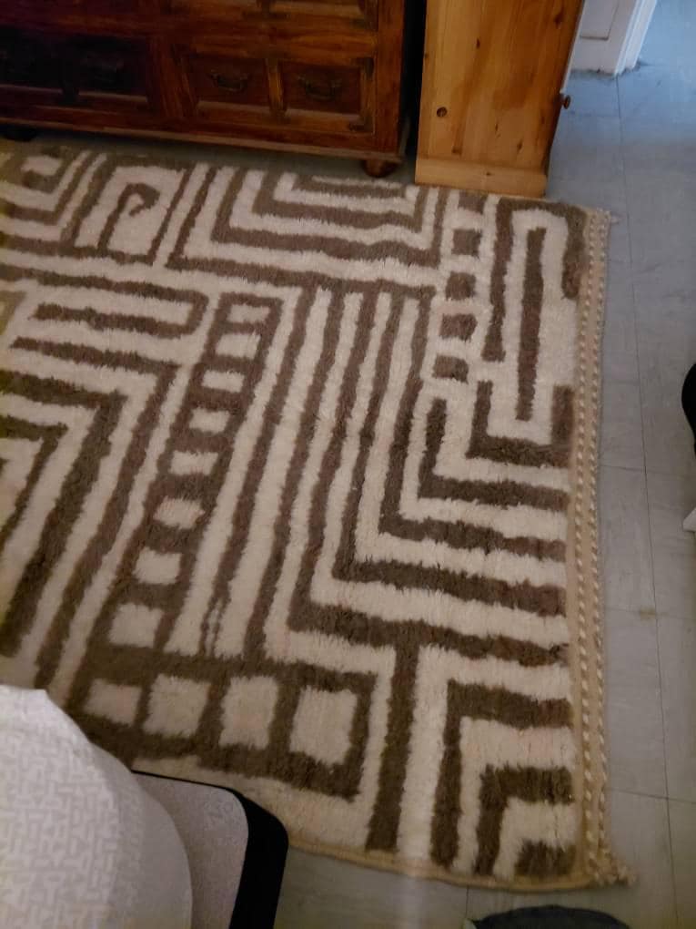 This Amazing gray and white rug is from Beni Ourain tribe. Moroccan Beni Ourain carpets are woven by our artisans in the high atlas mountains from undyed natural wool and traditionally decorated with abstract designs. These magnificent Moroccan rugs have the fascinating ability to connect the long history of the nomadic Berber tribes with modern-day interiors. The famous Beni Ourain rug is on the cover of the world’s leading home decoration magazines. This Moroccan rug with character goes perfectly with all interior styles, Bohemian, Modern, Minimalist, Scandinavian, Traditional…Our Moroccan rug will bring warmth to a minimalist and designer room while in more traditional décor, it introduces a dose of pop modernity. It is definitely the little something that humanizes a raw atmosphere or harmonizes a contemporary interior.